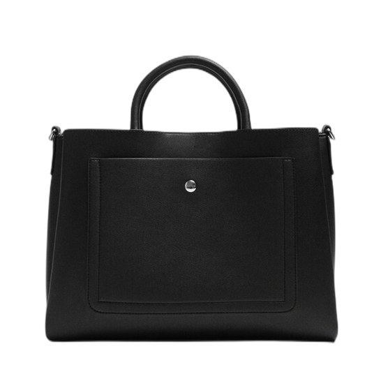 Rivets Studded Front Pocket Zipper Closure Long Strap Tote Bag
